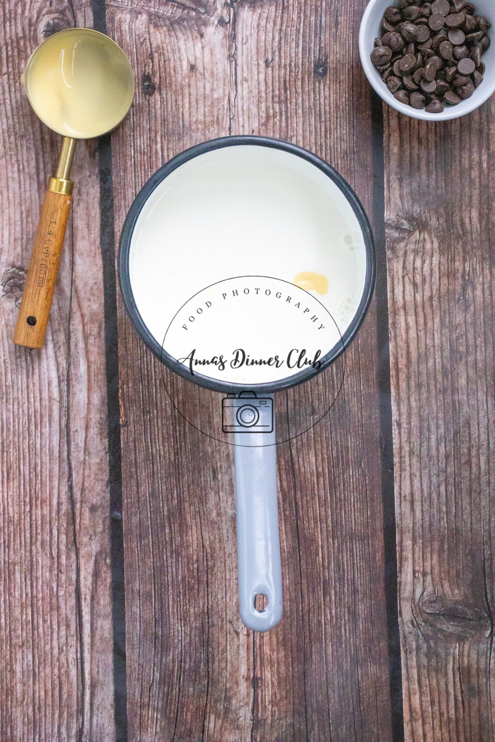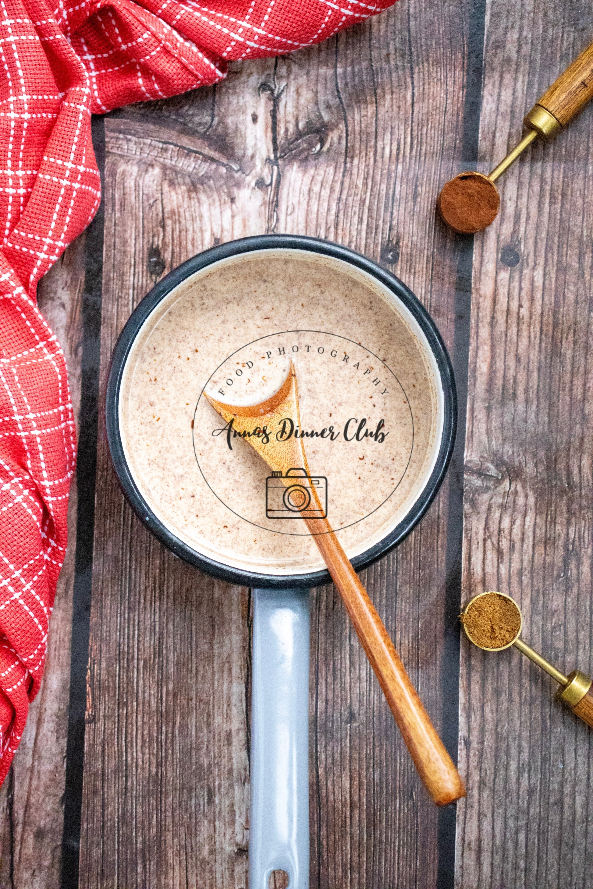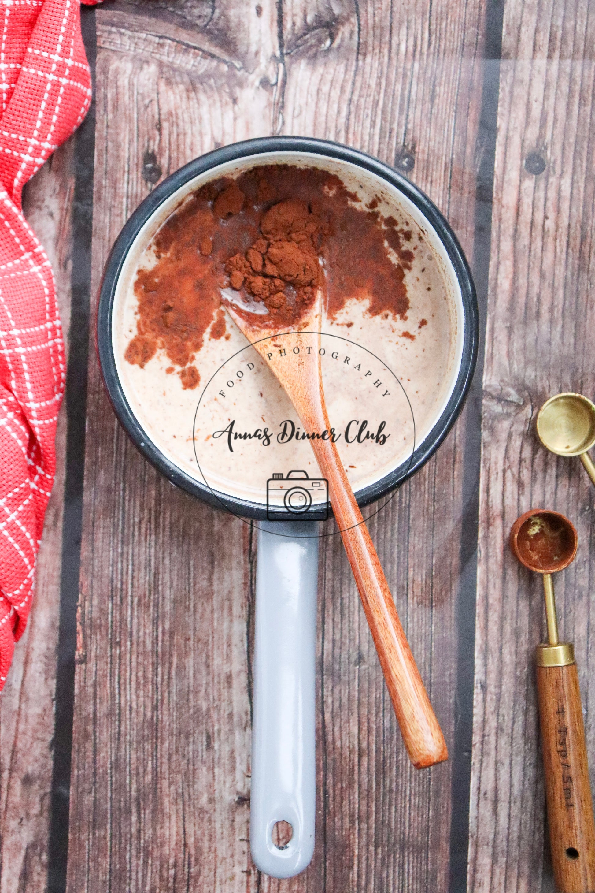 Ingredients: whole milk, eggnog, heavy cream, dark chocolate, brown sugar, cinnamon, nutmeg
