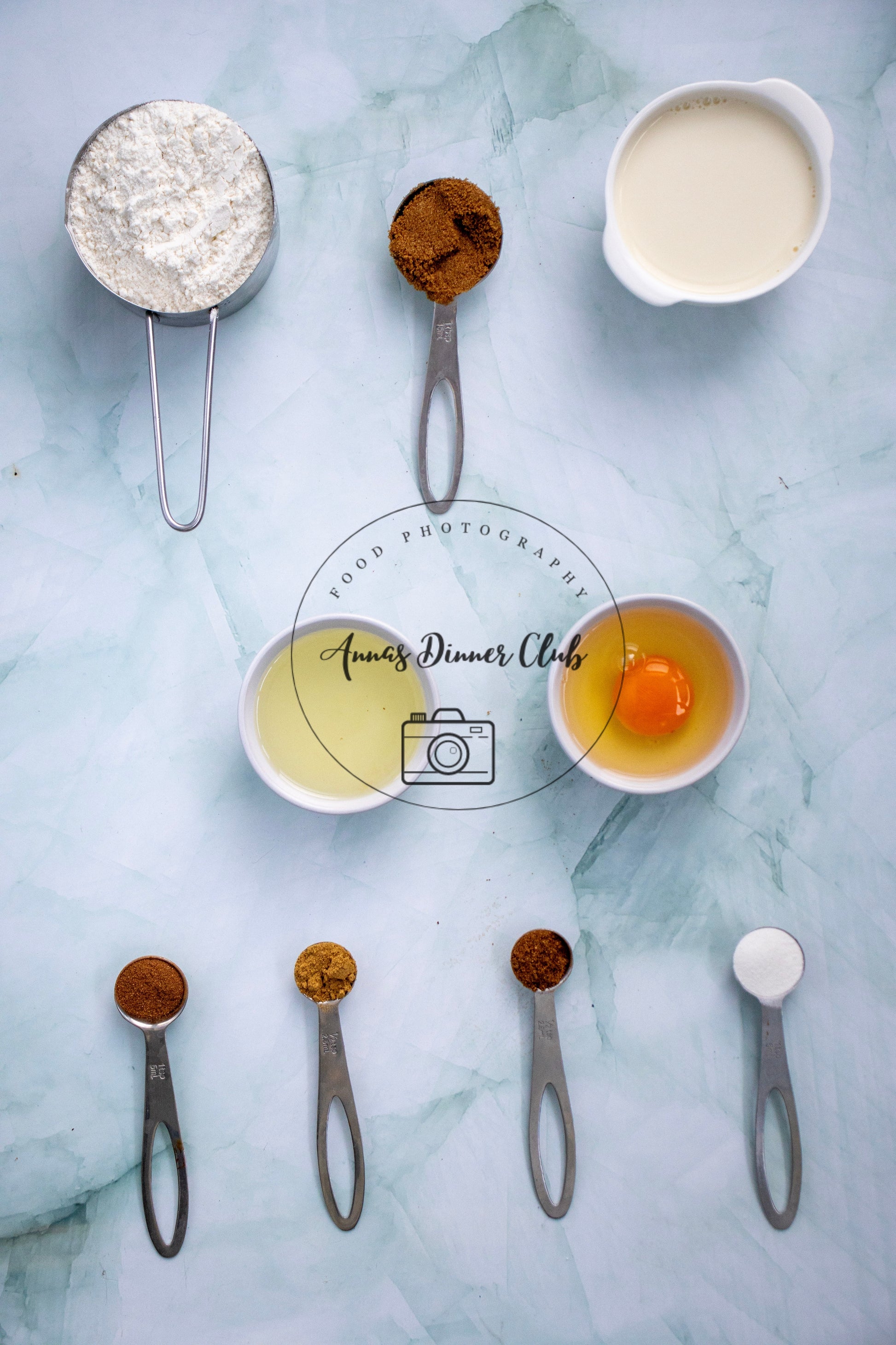 Ingredients: self raising flour, brown sugar, baking powder, ground cinnamon, ground ginger, milk, olive oil, eggs, gingerbread sprinkle ( optional)
