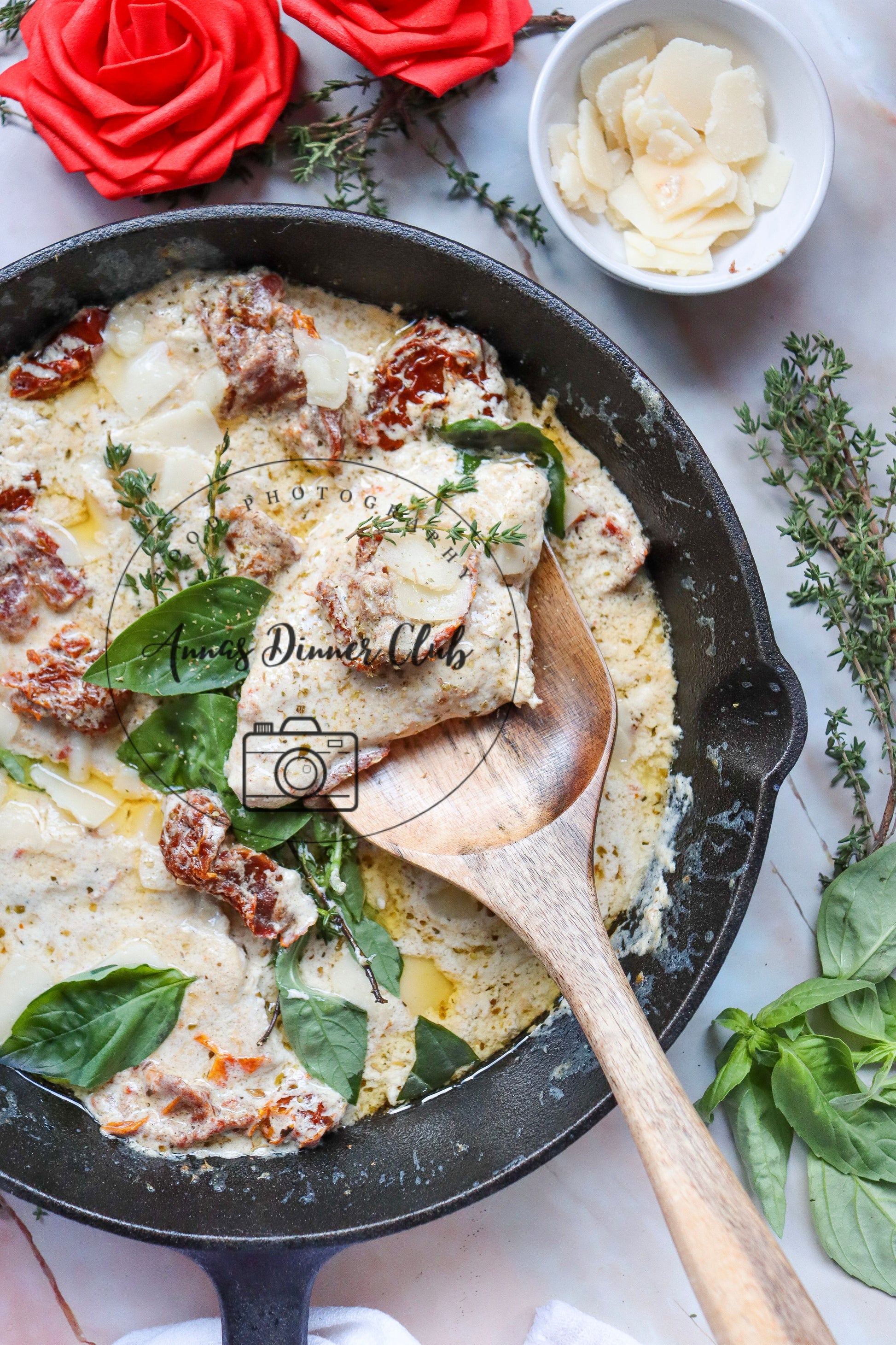 Marry Me Chicken is a delicious Italian-American dish featuring tender, golden-brown chicken breasts smothered in a rich, creamy sauce made with sun-dried tomatoes, garlic, and herbs.