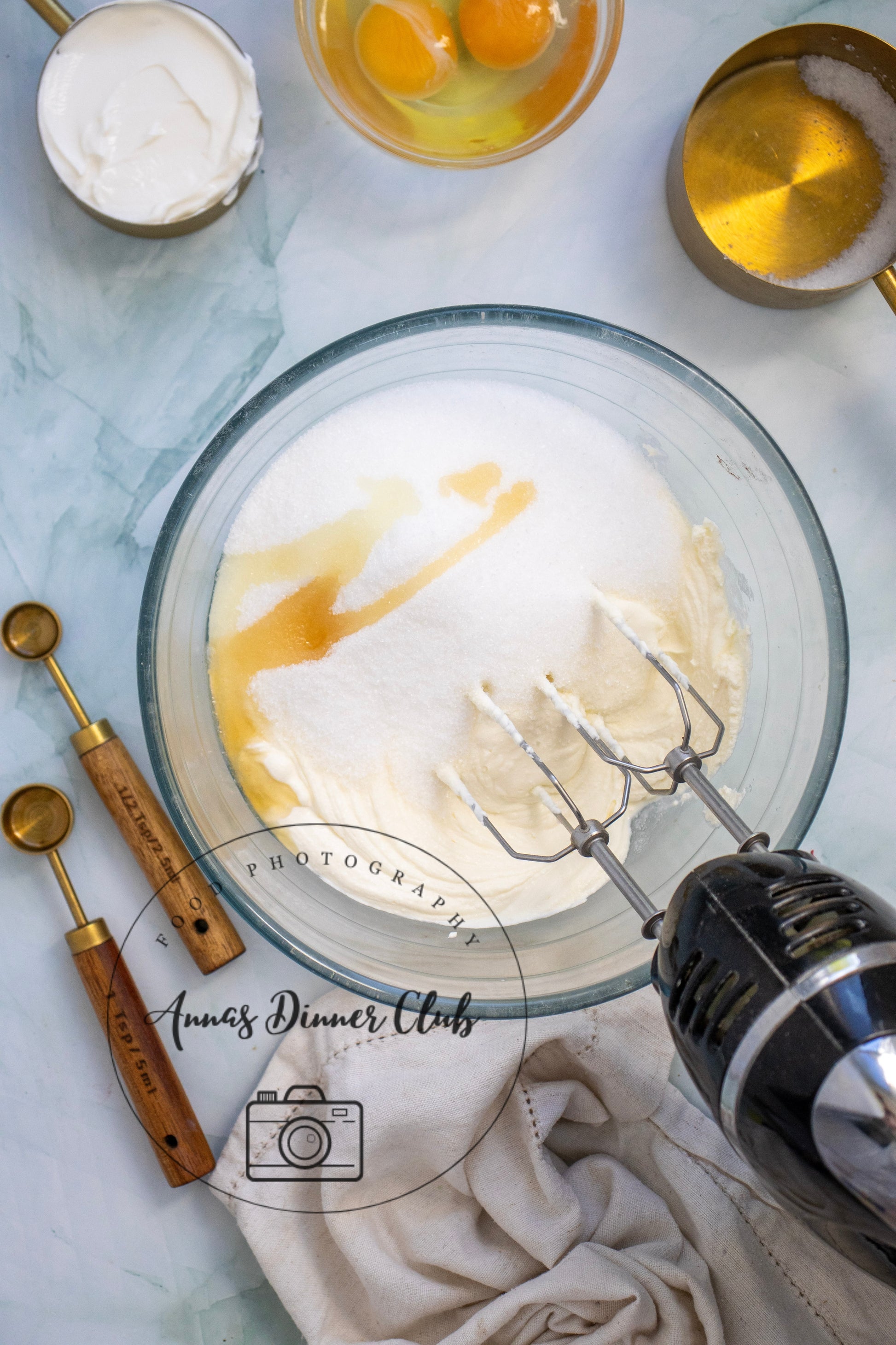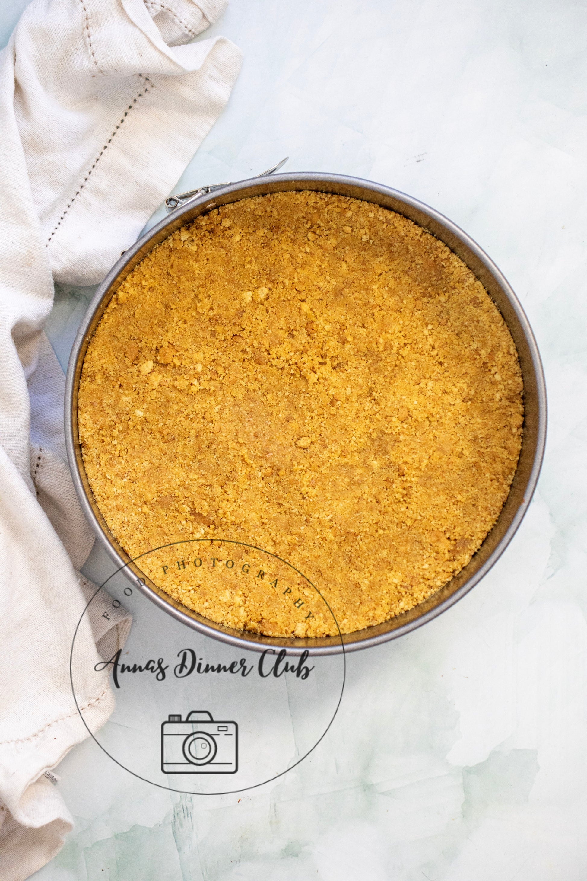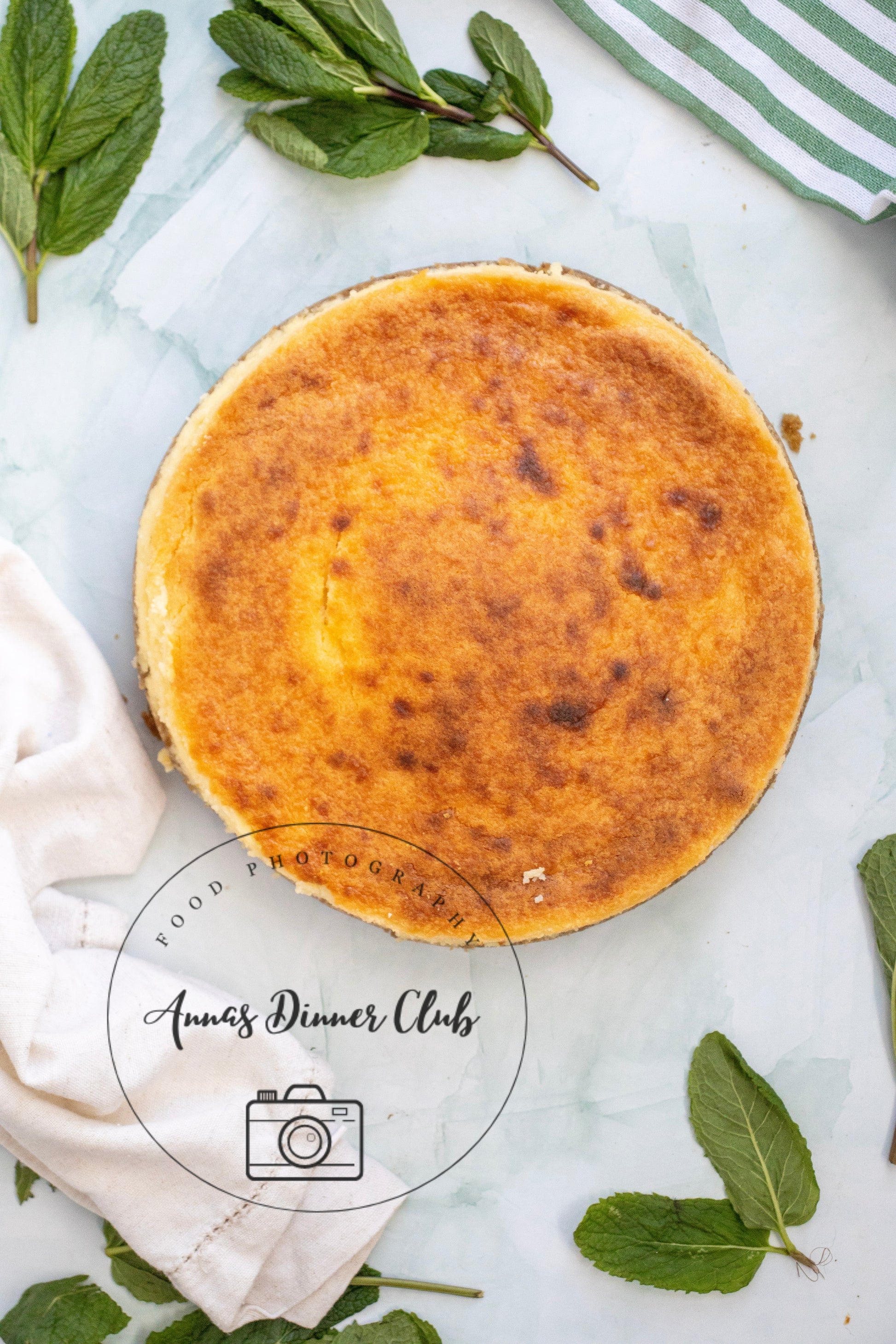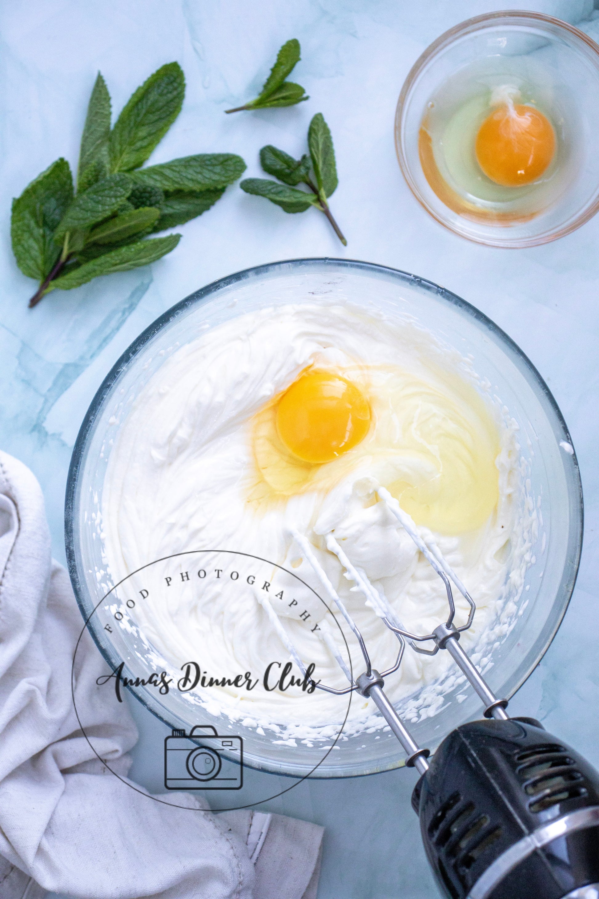 Ingredients: graham cracker crumbs, butter, cream cheese, vanilla extract, eggs, sour cream, peppermint extract, dark chocolate, granulated sugar, mint leaves and peppermint candies ( optional)