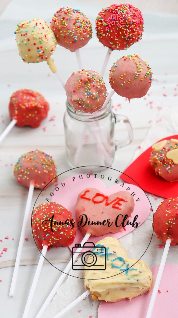 Ingredients: cake mix of your choice, Betty Croker frosting mix, lollipop sticks, white chocolate, sprinkles.